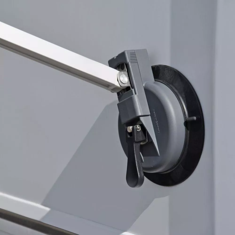 Der multiAnker 2.0 besteht aus 2 Saugnäpfen einer Zugkraft von je 70 kg, mit denen du die Markisenstützfüsse am Wohnmobil, Kastenwagen oder Wohnwagen fixierst. Bei ungünstigen Böden, wie z.B. bei asphaltierten Stellplätzen, kommt er zum Einsatz! Die Montage erfolgt ohne Veränderungen am Fahrzeug und ist durch den stabilen Hebelmechanismus sicher und einfach zu bewältigen. Der multiAnker 2.0 ist kompatibel zu den Markisen von Thule Omnistor, Fiamma und Dometic.